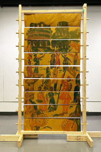 Inspired by this, I wanted to create a work that addresses how history and narration of any information is usually one part of the story depending on who is telling it and where you are in the world. So, one side of the work shows the prosperity of the Maratha Empire and the celebrated history that was taught to me. The other side shows the destruction they caused in other parts of India, a dark history that I was not taught. You can interact with this work, rotate the panels to see both sides and mix them up together, prompting you to think about your interaction with the histories as well as their interaction with each other.